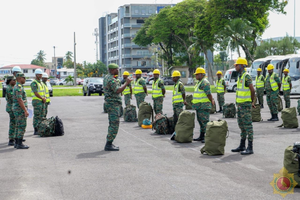 Acting Chief of Defence Staff, Colonel Kenlloyd Roberts, MSM, briefed the troops before departure, reminding the ranks that their professionalism and experience remain critical to the success of the mission. He emphasised that the team carries the responsibility of representing their unit, the GDF, and the nation.
