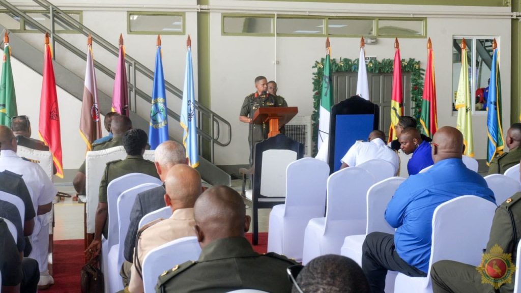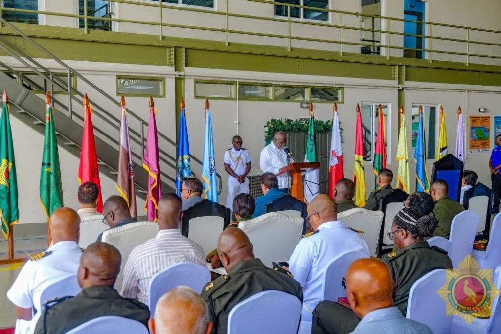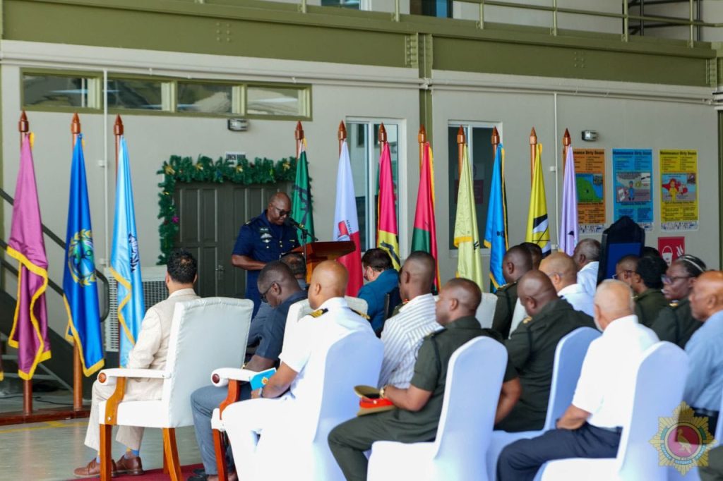 In attendance were Prime Minister Brigadier (Ret’d) Mark Phillips, MSS, and Senior Minister within the Office of the President with Responsibility for Finance and Public Service, Hon. Dr. Ashni Singh, Minister of Public Utilities and Aviation, Hon. Deodat Indar. They were joined by the National Security Advisor, the Director of the National Intelligence and Security Agency, other members of the Defence Board, Heads of Service, representatives from the aviation sector, and Chief of Defence Staff Brigadier Omar Khan, MSS, along with senior officers, ranks, and special guests.
