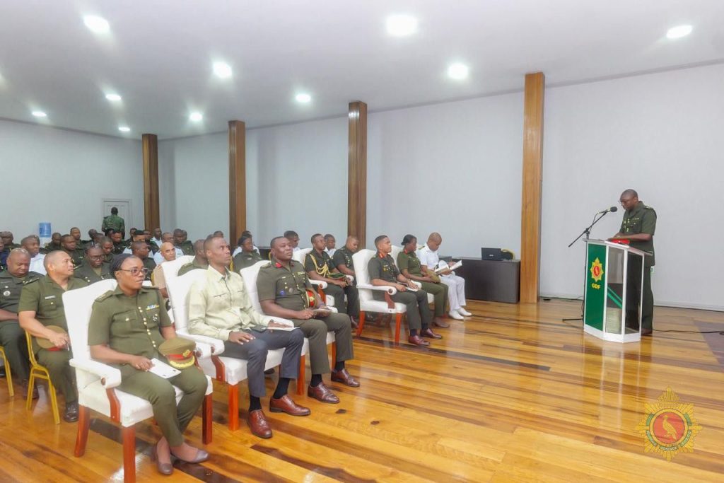 Delivering the feature address, Chief of Defence Staff, Brigadier Omar Khan, MSS, underscored the critical role these officers will play in shaping the future of the Force and serving the people of Guyana. He framed the course as a defining phase in the professional development of the Officers.