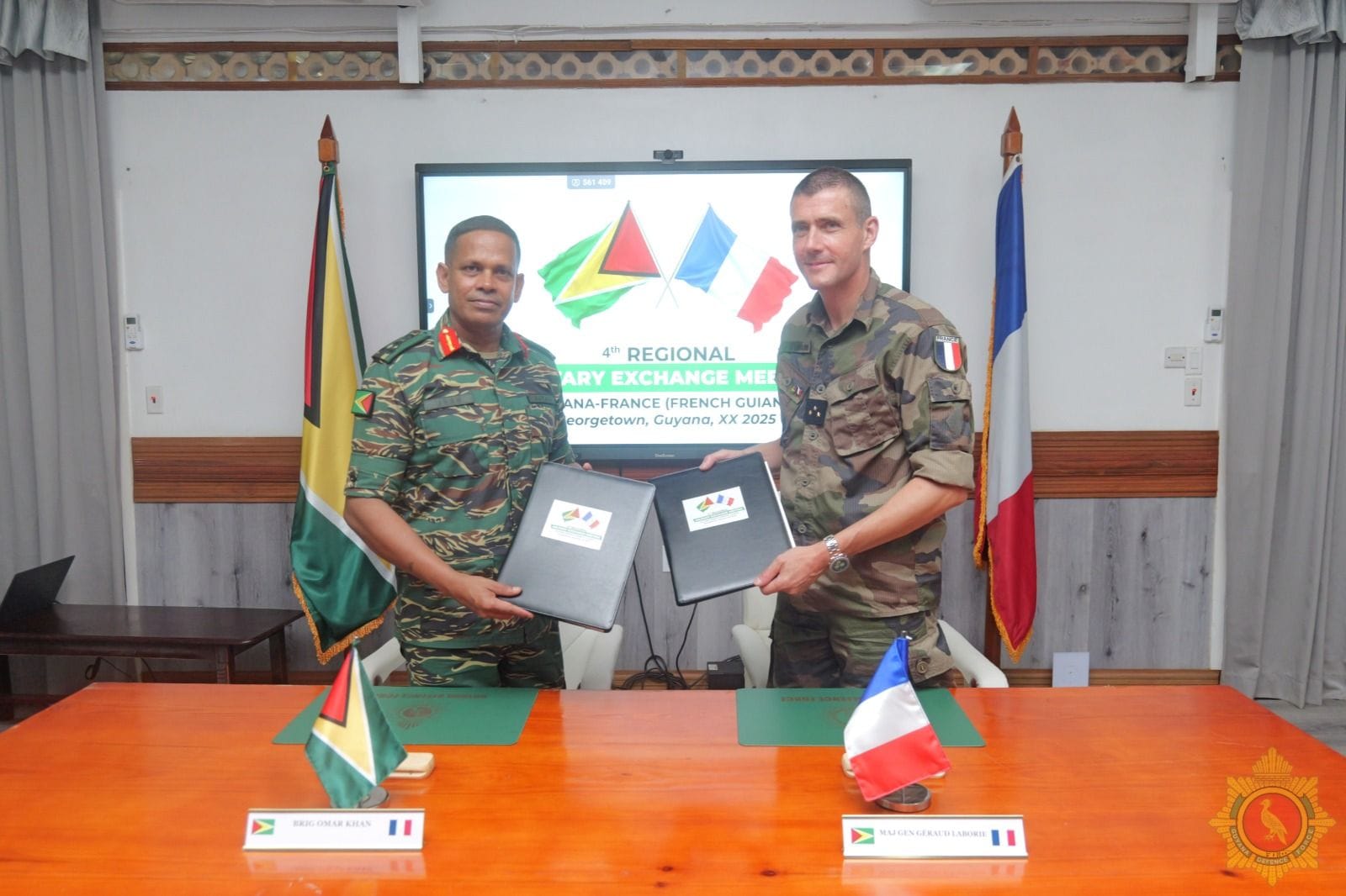 The Guyana Defence Force this morning convened the 4th Regional Exchange Meeting between Guyana and France, marking another significant step in the deepening security cooperation between the two nations. The meeting brought together senior military officials from the GDF and the French Armed Forces in French Guiana.