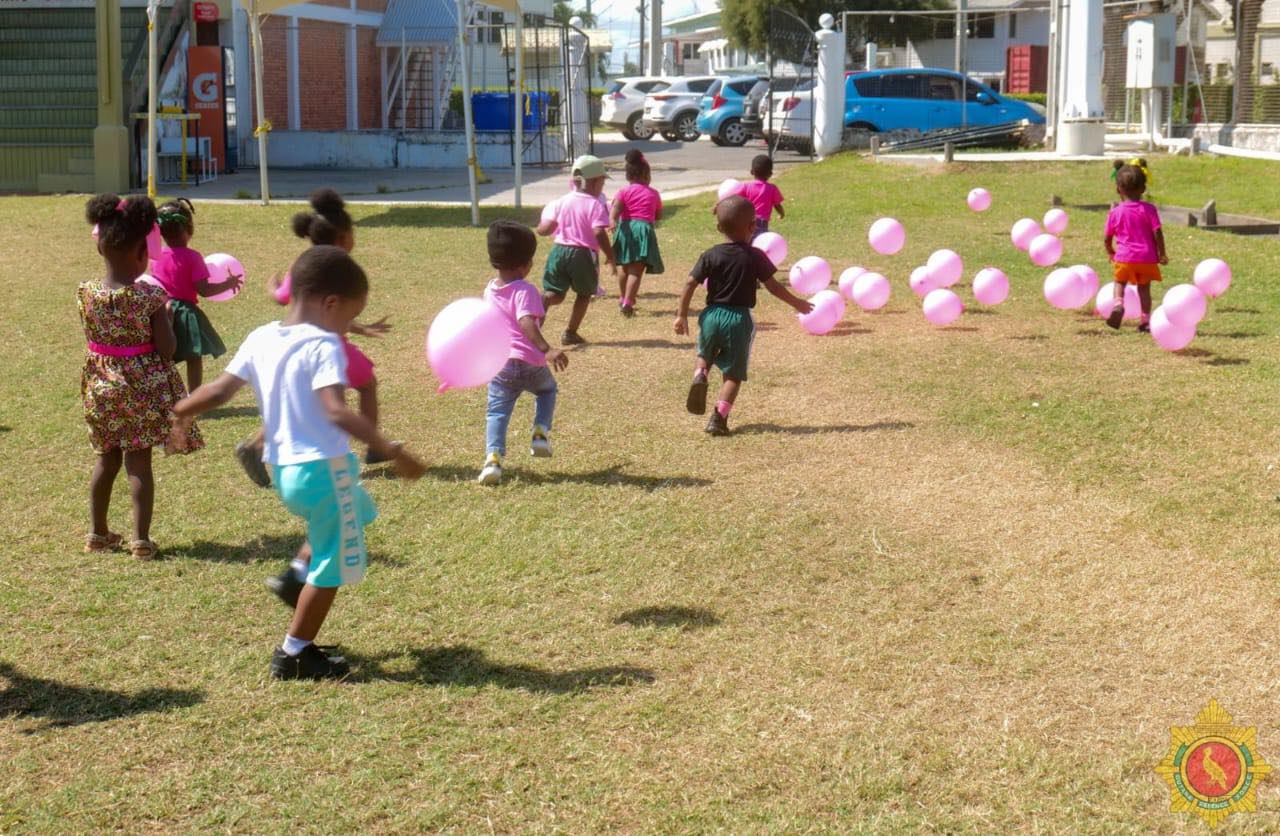The tots and teachers of the Margaret Rose Arthur Daycare Centre today held a mini walk around Base Camp Ayanganna in observance of Breast Cancer Awareness Month.