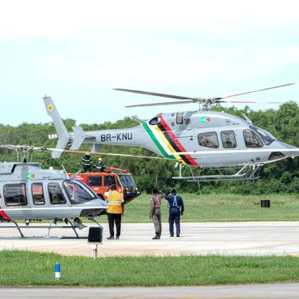 The Guyana Defence Force strengthened its air capabilities following the acquisition of two new Bell helicopters. The rotary wing aircraft, bearing registrations 8R KNU (Bell 429) and 8R AKA (Bell 407), received the traditional water