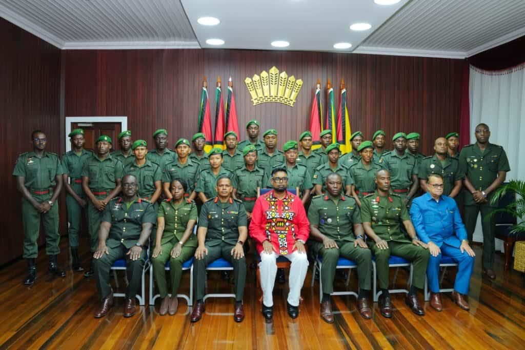The ceremony, held at Office Of the President, saw the Second Lieutenants taking the Oath of Service before the Commander-in-Chief, in the presence of Chief of Defence Staff, Brigadier Omar Khan, MSS, along with senior officers of the Guyana Defence Force and members of the Joint Services.
